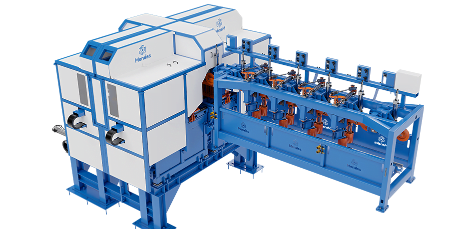 - Pressionadores superiores acionados por cilindros pneumáticos especiais com tripla ação para melhor performance em linhas de produção de alta velocidade (até 150 m/min)
